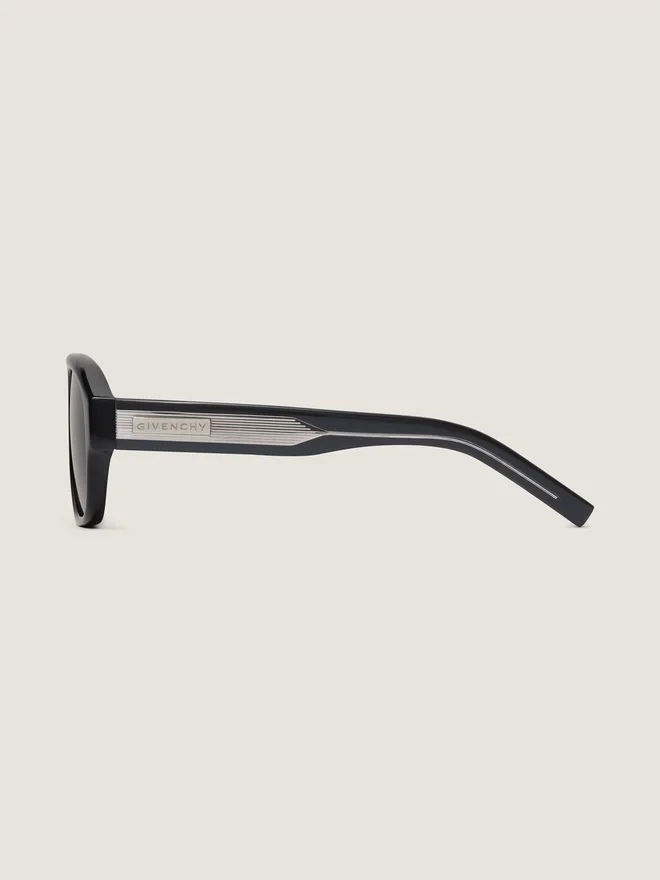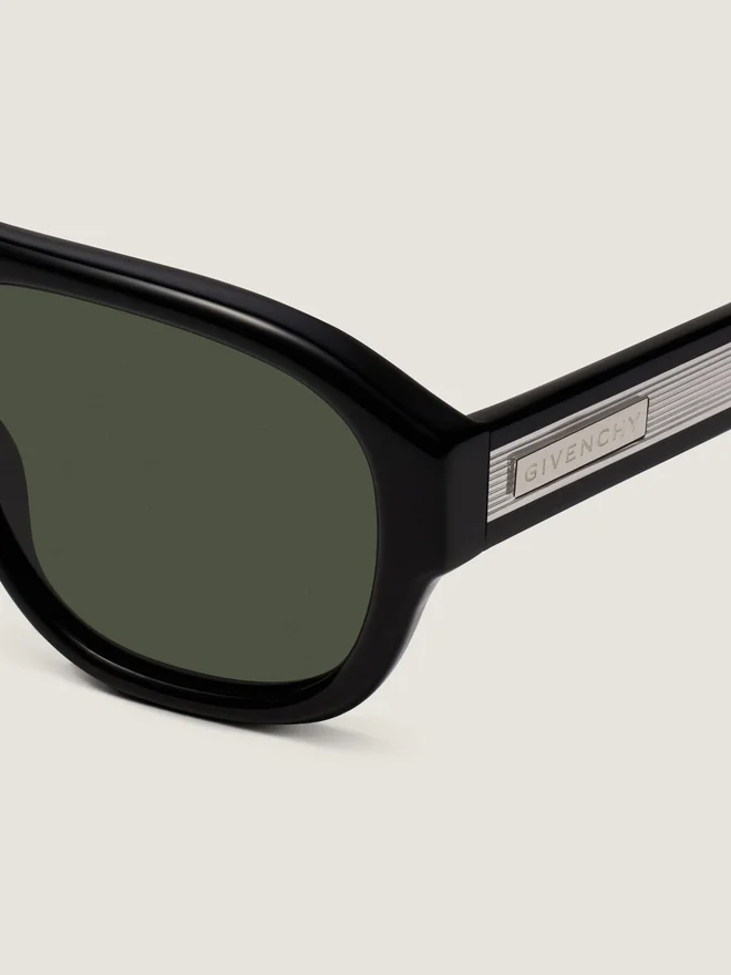 Sunglasses in Acetate. Day Line. Aviator Shape. Dark Green Lenses. Double Bridge. Metal Plaque with Engraved Givenchy on the