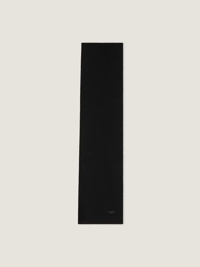 Scarf in Knitted Wool. Tone-On-Tone Givenchy Paris Signature Embroidered on the Edge. Matching Snood and Beanie Sold Separately.