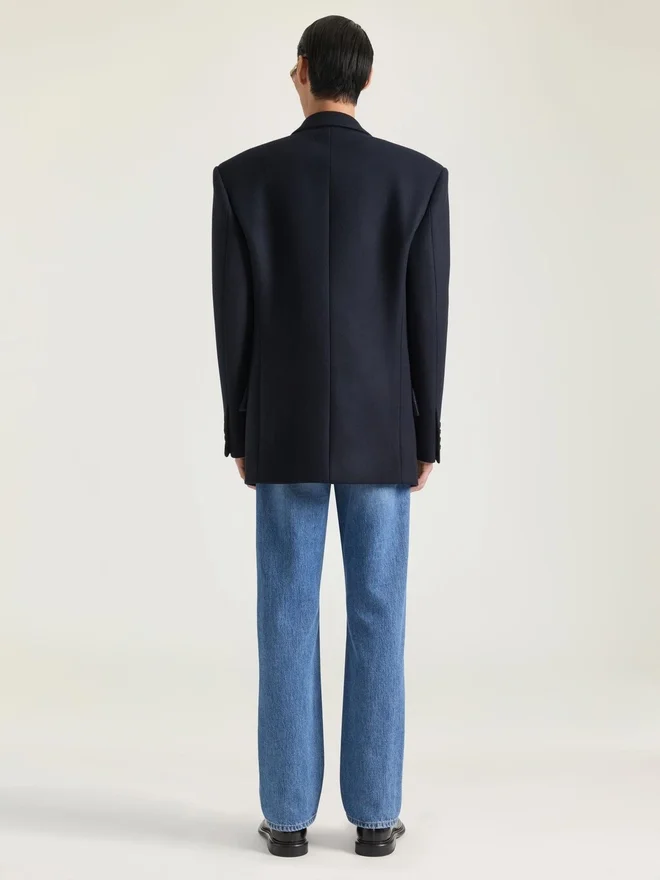 A Deconstructed, Relaxed Silhouette with Soft Shoulders, Fluidity and Minimal Internal Structure. Jacket in Wool. Deconstructed