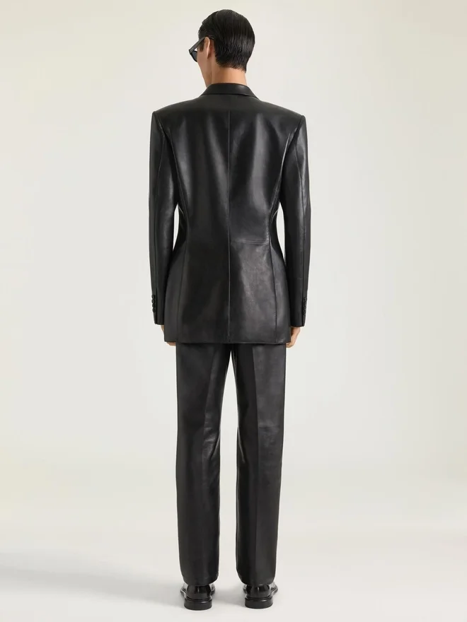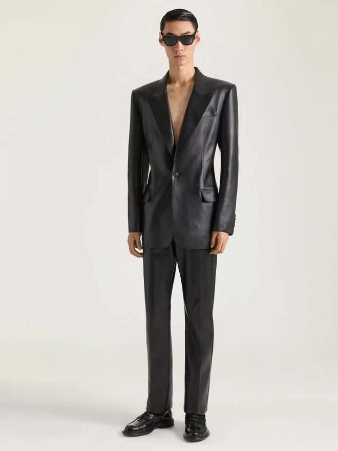 Jacket in Plonge Lambskin. Peak Lapel. Button Closure. Buttoned Cuffs. One Chest Pocket. Two Front Flap Pockets. Satin Lining.
