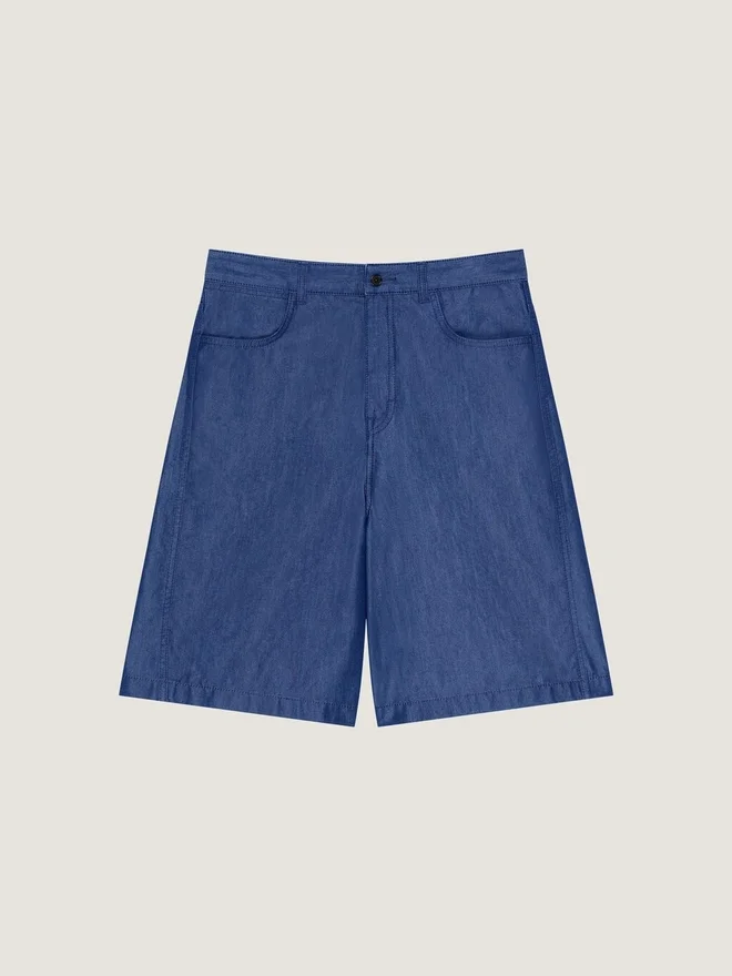 - Bermuda Shorts in Indigo Blue Denim.