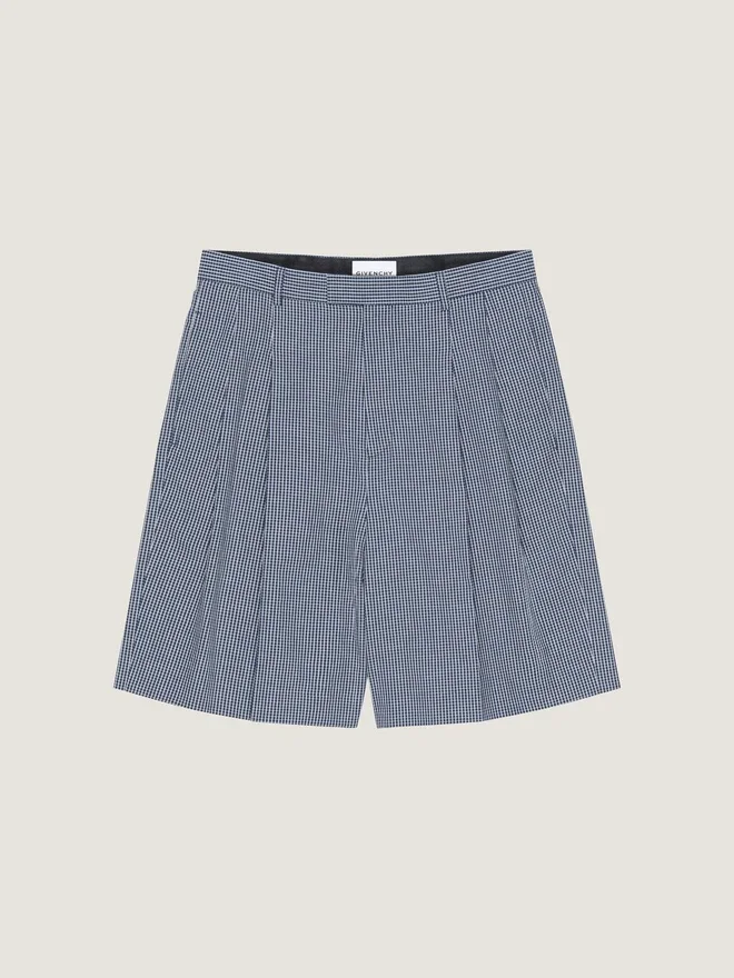 Double Pleat Checked Bermuda Shorts in Cotton