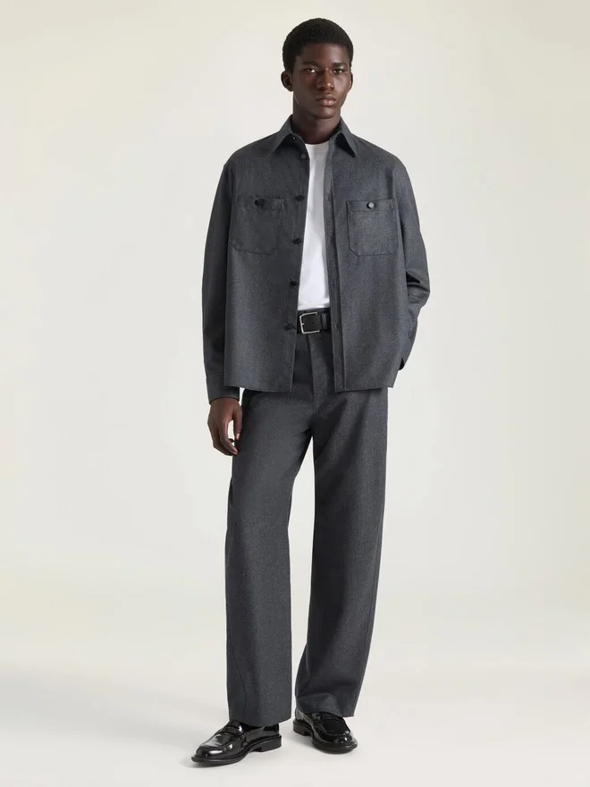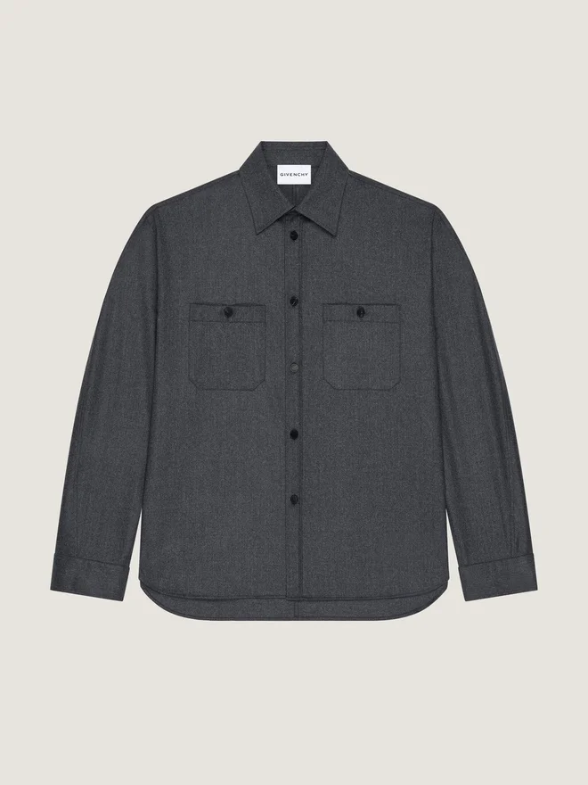 • Long-Sleeved Overshirt in Wool Flannel.
