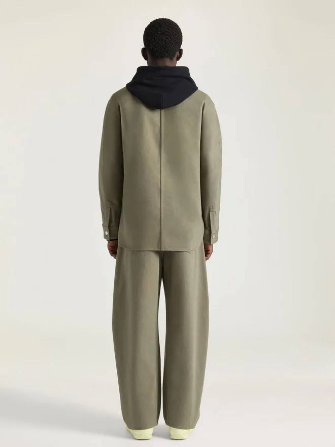 • Long-Sleeved Overshirt in Overdyed Denim.