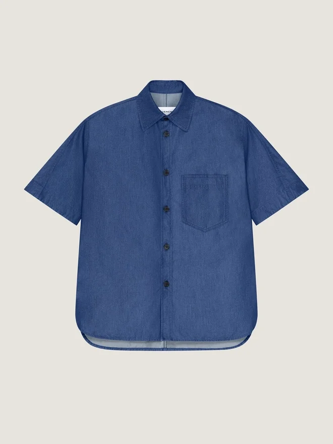 - Short-Sleeved Shirt in Indigo Blue Denim.