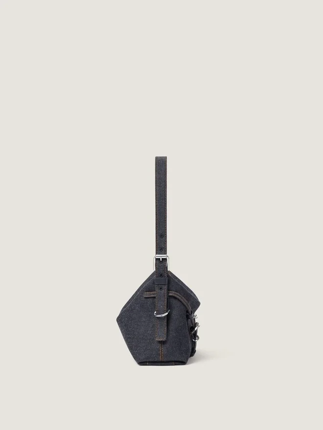 • Mini Shoulder Bag in Denim with Contrasting Stitchings.
