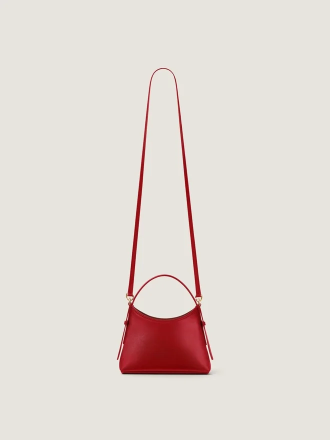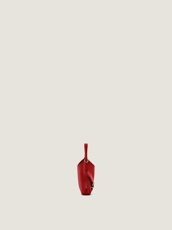 Nano Handbag Bag in Elevated Smooth and Shiny Calfskin Leather. Voyou Line. Short Leather Handle. Thin Removable Leather Strap