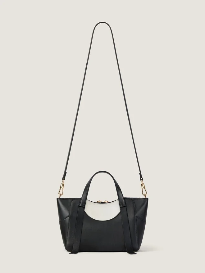 - Leather Handles for Crossbody Carrying.