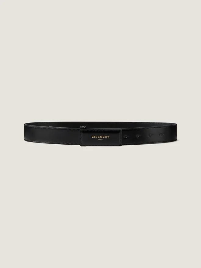 Belt in Box Leather. Label Line. Leather Buckle with Givenchy Paris Signature. Adjustable to Be Worn in a Classic Way or at the Waist.
