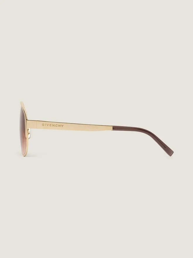 Sunglasses in Metal. Givenchy Bold Line. Pilot Shape. Copper Brown Lenses. Adjustable Nose Pads. Givenchy Signature Engraved on
