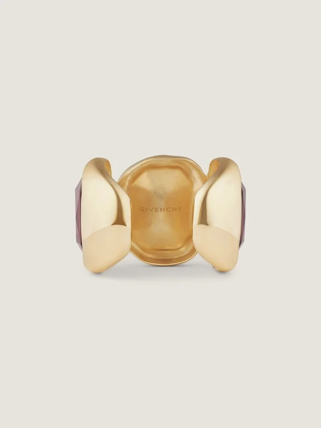 - Large Cuff Bracelet in Golden-Finish Metal with Colored Crystals.