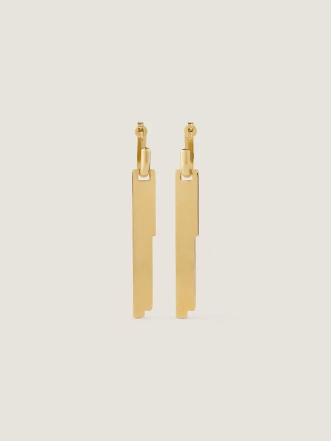 - Pendant Earrings in Golden-Finish Textured Metal.