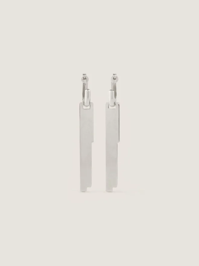• Pendant Earrings in Silvery-Finish Textured Metal.