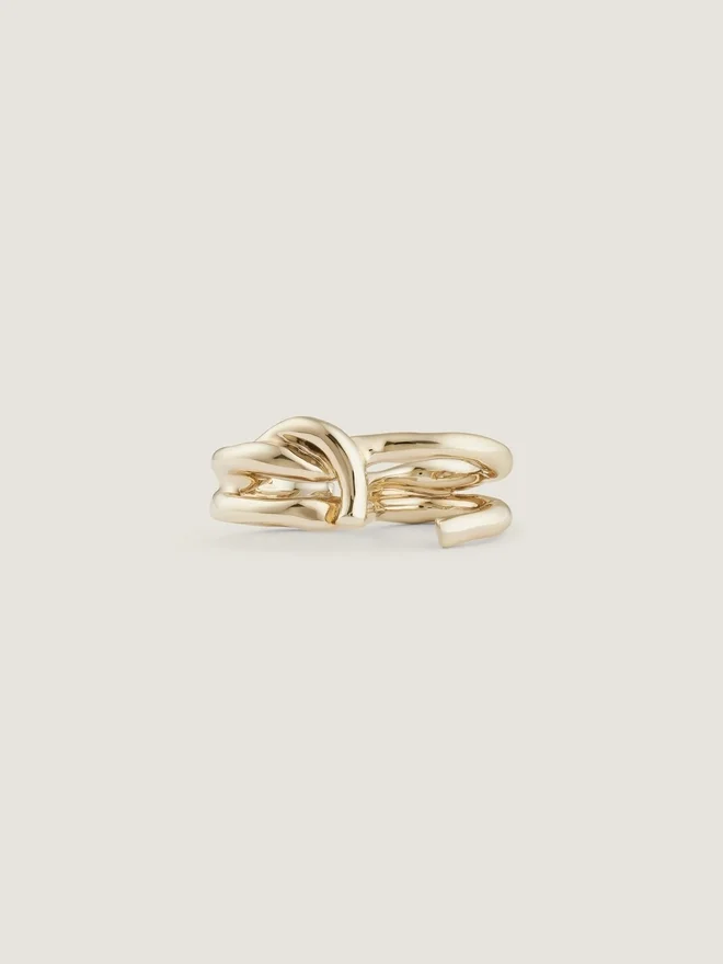 • Double Fingers in Pale Golden-Finish Twisted Metal.
