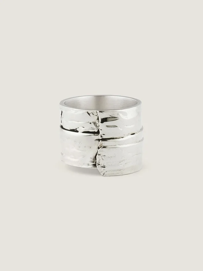 - Ring in Silvery-Finish Textured Metal.