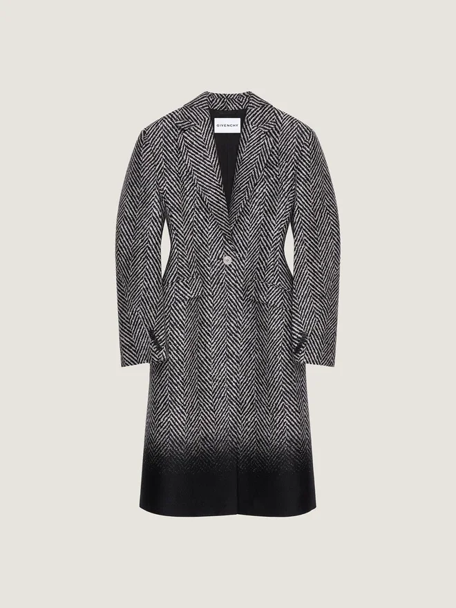 Cocoon Fitted Coat in Herringbone Jacquard Mixed Wool