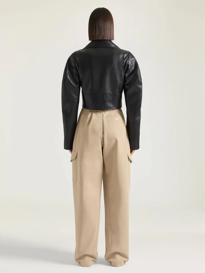 Be the first to review “Cropped Cocoon Biker Jacket in Leather”