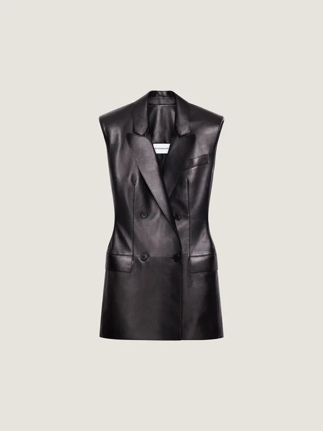 Be the first to review “Double-Breasted Sleeveless Jacket in Leather”