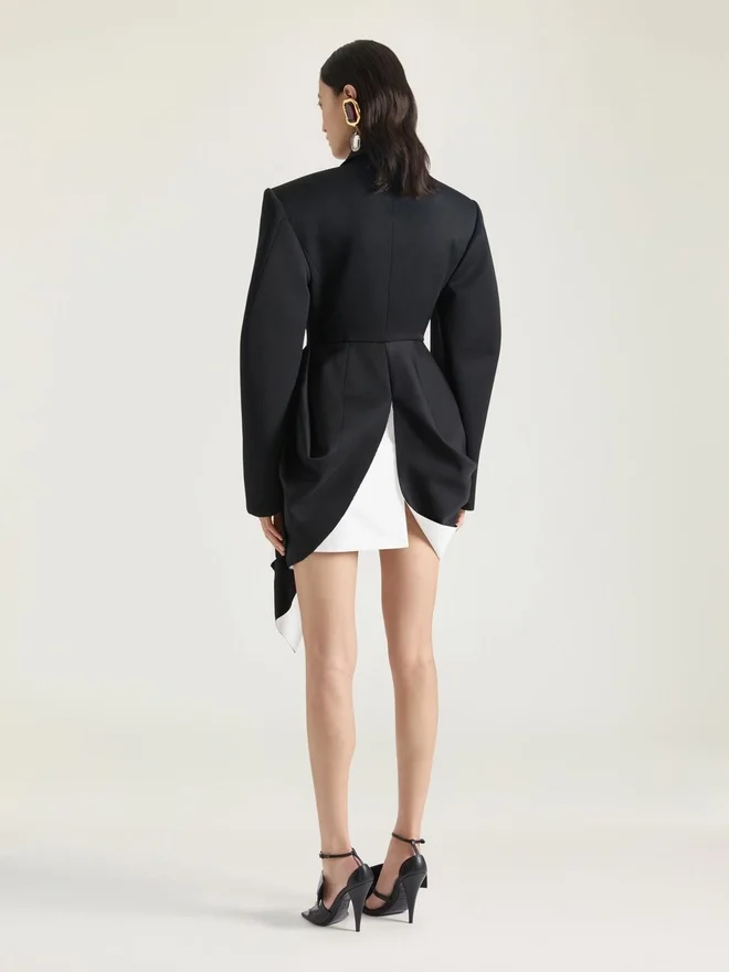 A Straight Silhouette with a Regular Fit and a Clean Waistline, Balancing Structure and Modernity. Structured Bicolor Jacket in