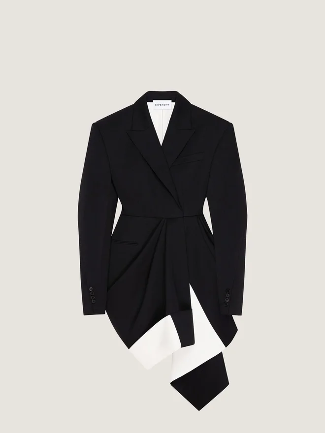 • Structured Bicolor Jacket in Grain De Poudre Wool.