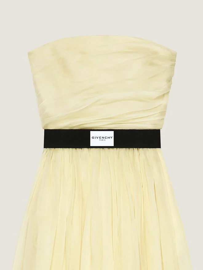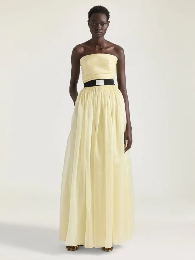 - Long Bustier Evening Dress in Organza.