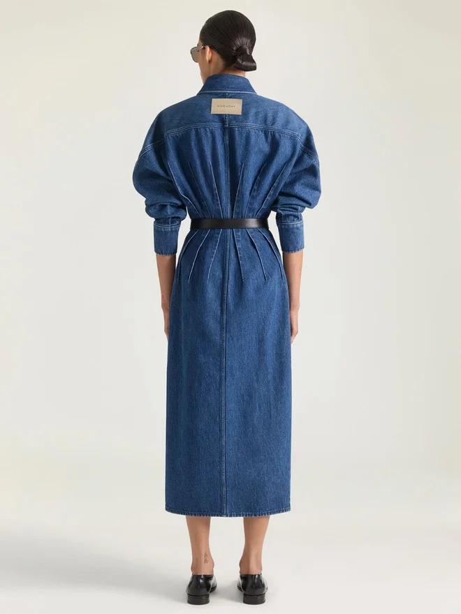 • Long Dress with Long Sleeves in Medium Blue Denim.