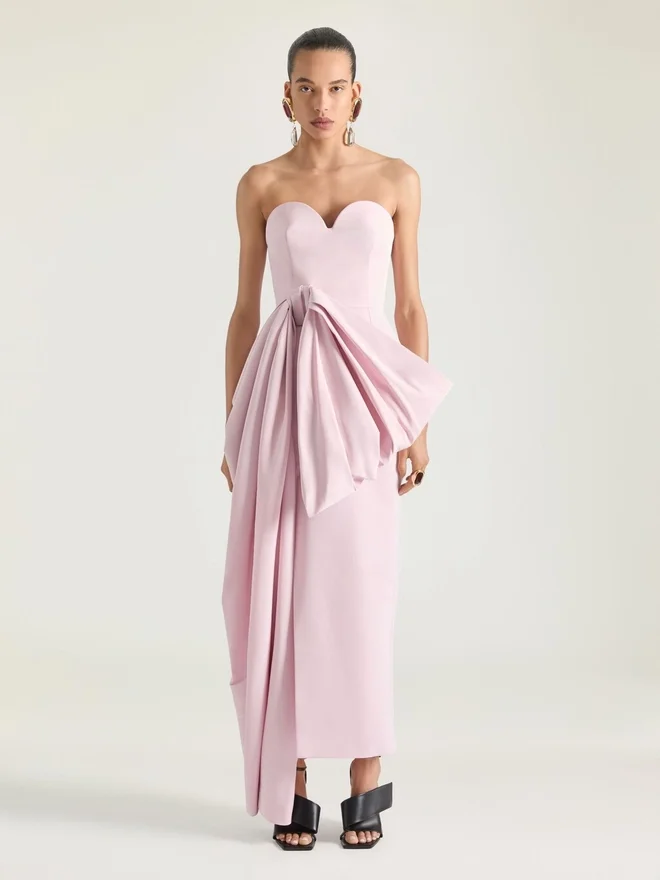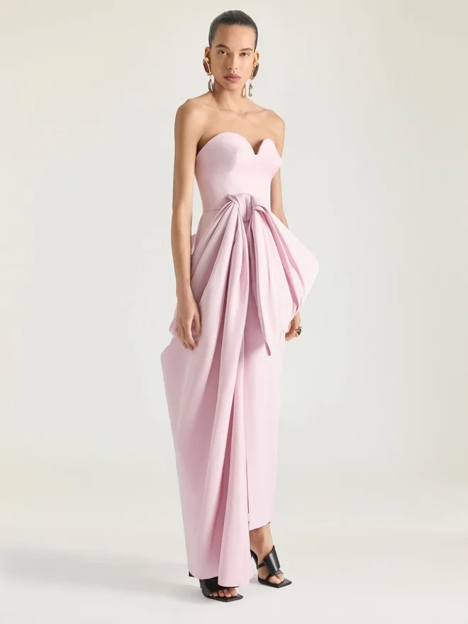 Evening Bustier Dress in Polyfaille with Bow Detail