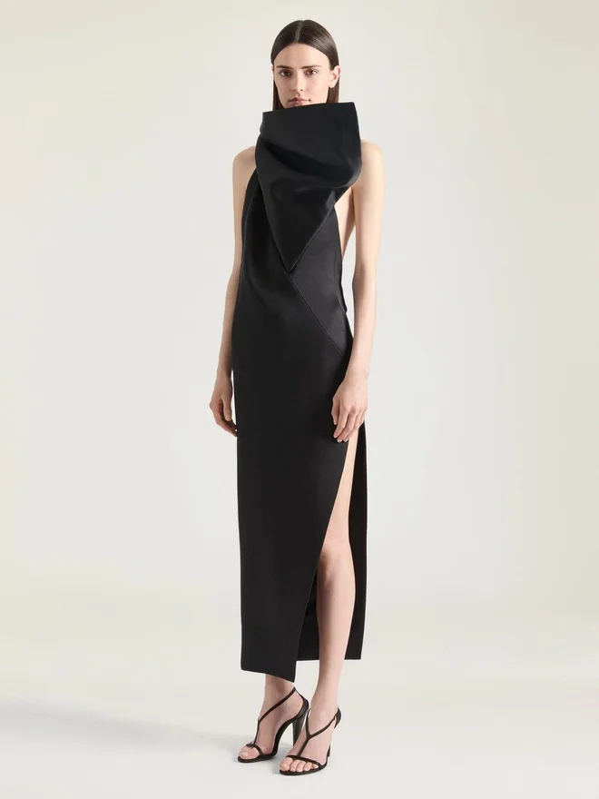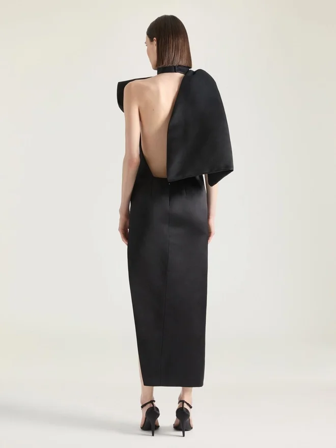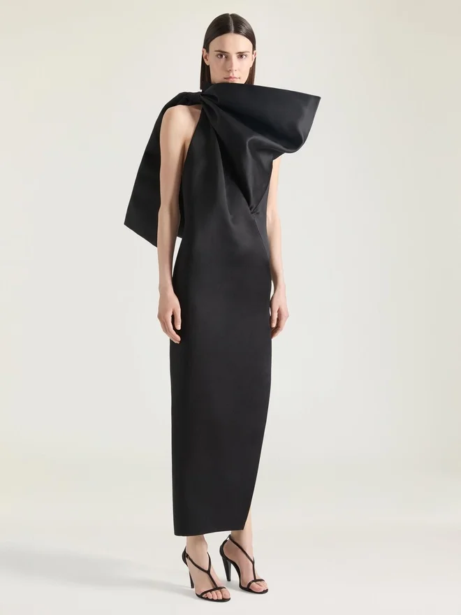 - Long Evening Dress in Silk Satin Duchesse.