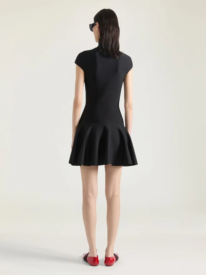 • Cap Sleeves Mini Dress in Viscose Wool.