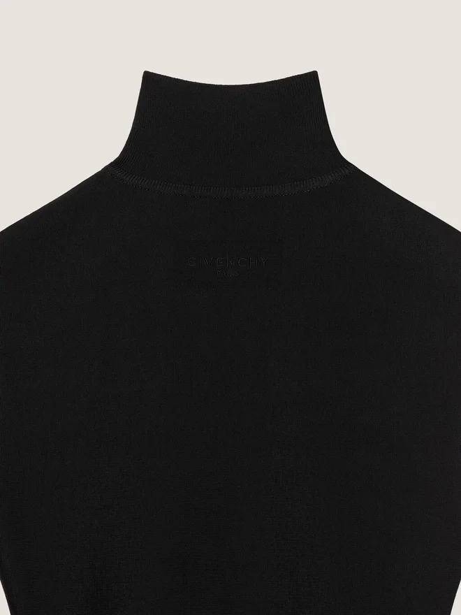 Cap Sleeves Mini Dress in Viscose Wool. High Neck. Givenchy Paris Signature Embroidered on the Upper Back. Invisible Zipped