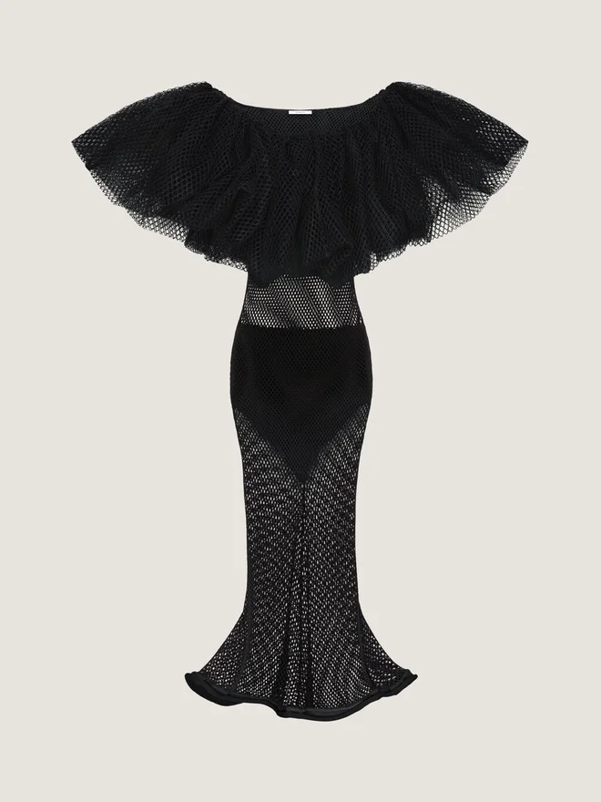 - Long Sleeveless Dress in Transparent Mesh.