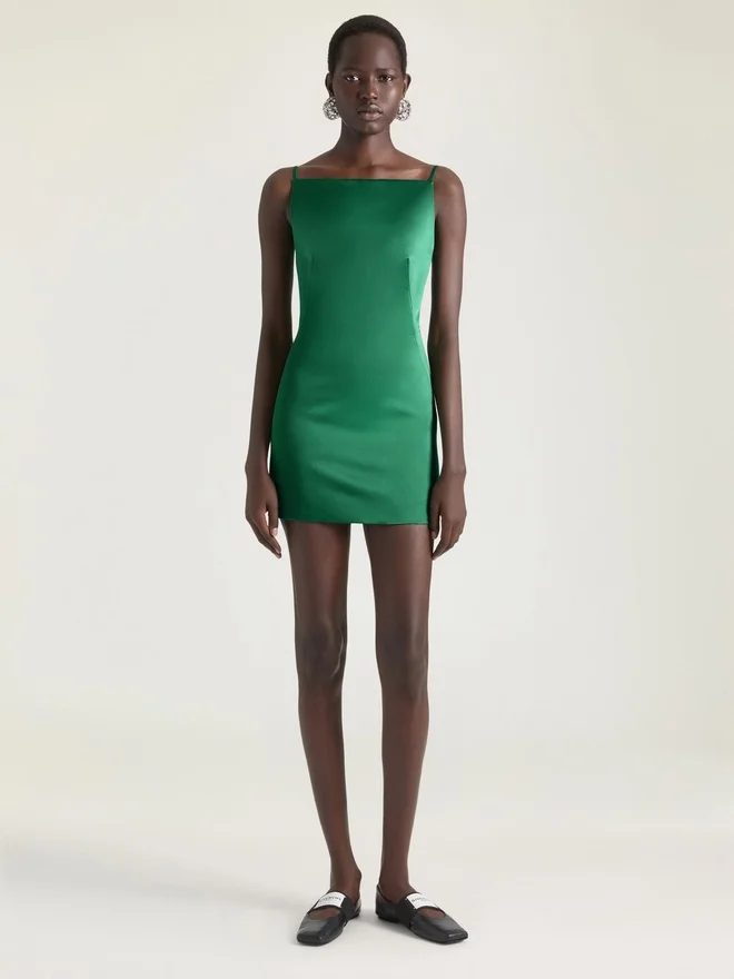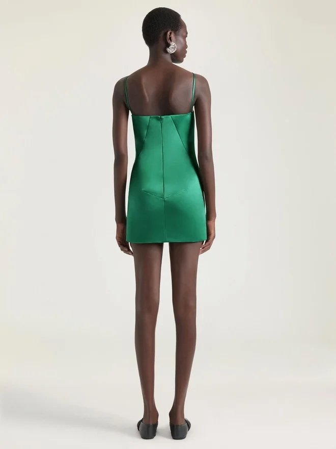 • Sliced Mini Dress in Silk Satin Duchesse.