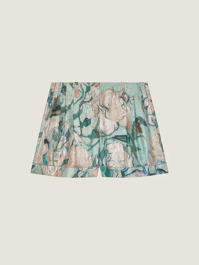 Shorts in Silk with Roses Print