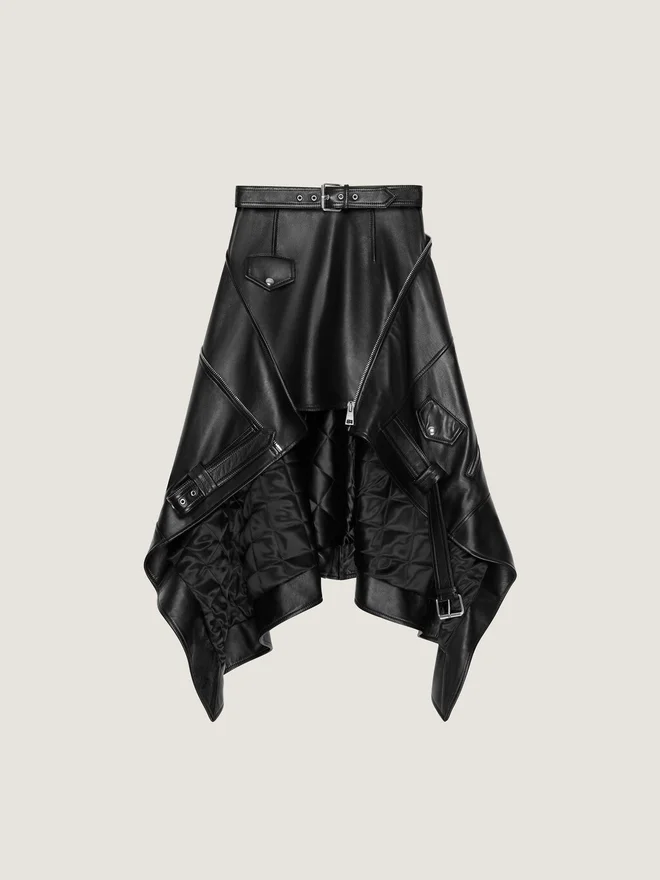 Asymmetric Biker Skirt in Leather