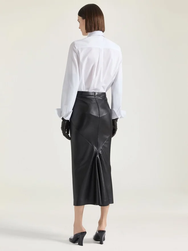Midi Kickback Skirt in Nappa Leather