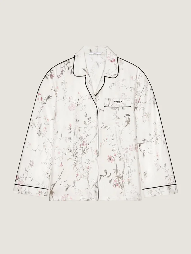 - Long-Sleeved Pyjama Shirt in Silk with Floral Print.