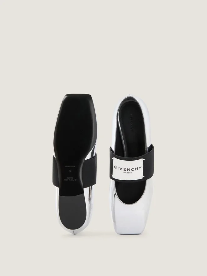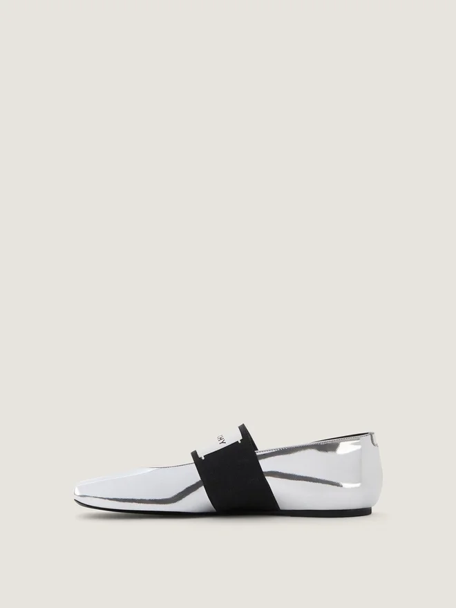 - Flat Ballerinas in Mirror Effect Calfskin Leather.
