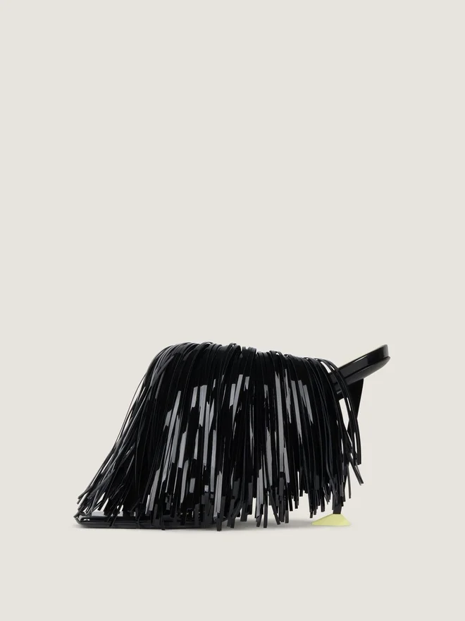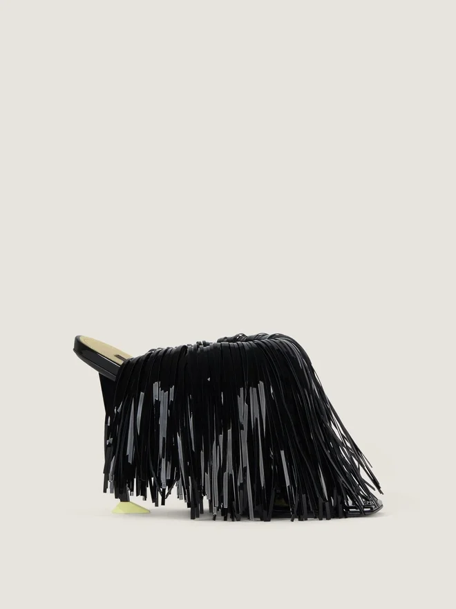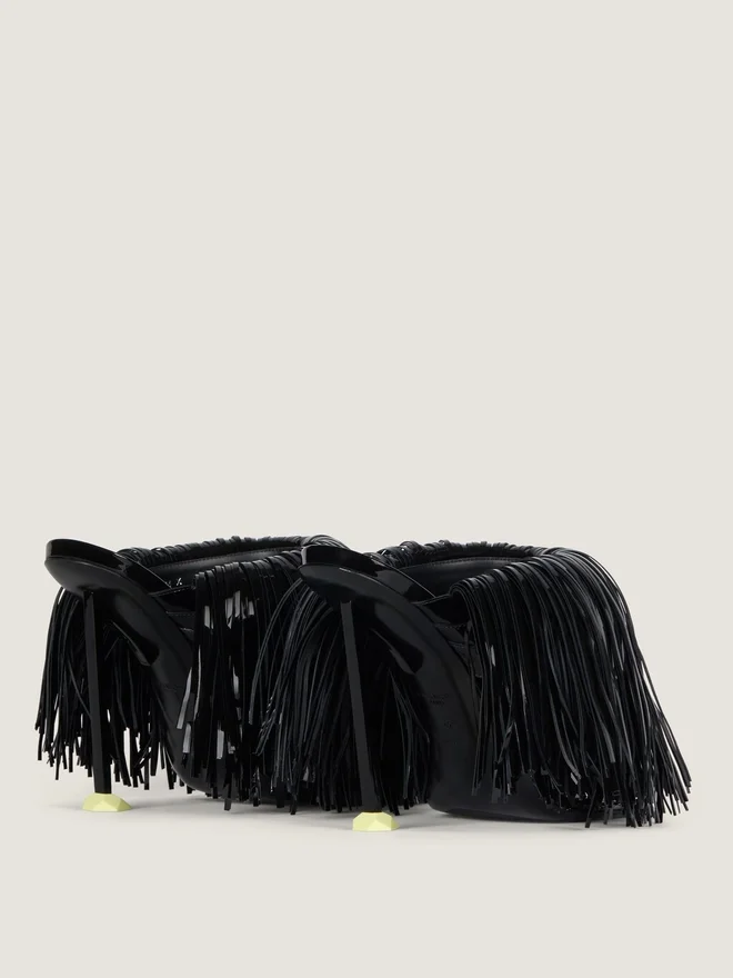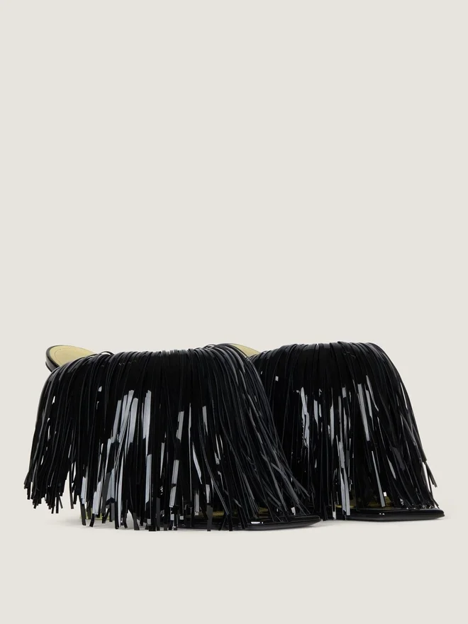 - Fringed Heeled Mules in Patent Calfskin Leather.