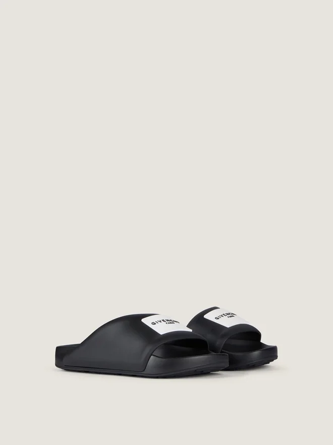 Flat Mules in Rubber. Label Line. Asymmetric Design. Givenchy Paris Rubber Label on the Top. Givenchy Paris Signature Debossed on
